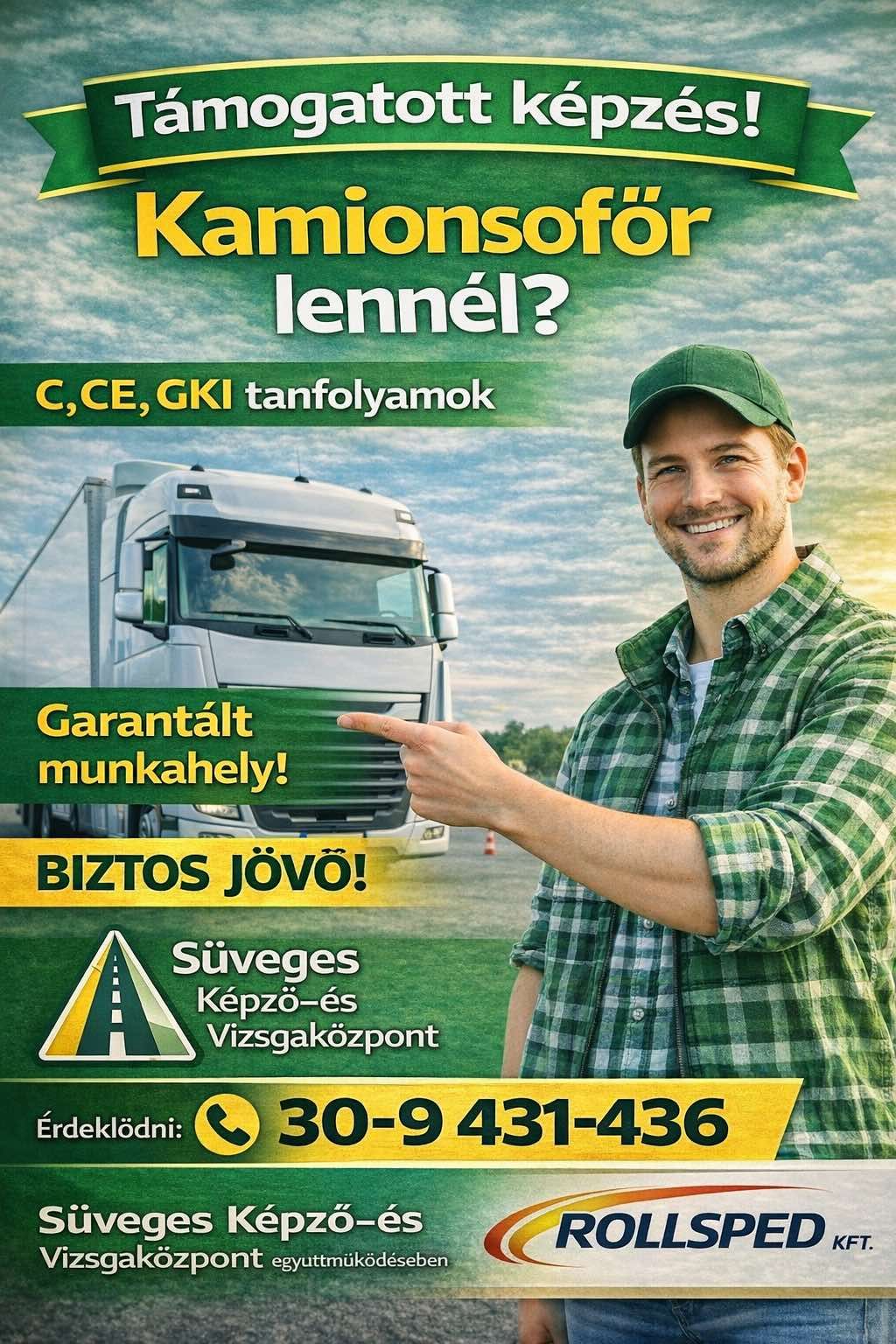 Összefogott a Süveges Képző- és Vizsgaközpont és a Rollsped Kft, hogy közös erővel képezzék ki a jövő kamionsofőrjeit, akiket a sikeres vizsgákat követően már konkrét állás várja. A részletekről Süveges Sándor és Szűcs-Szabó Sándor ügyvezetők nyilatkoztak rádiónknak.