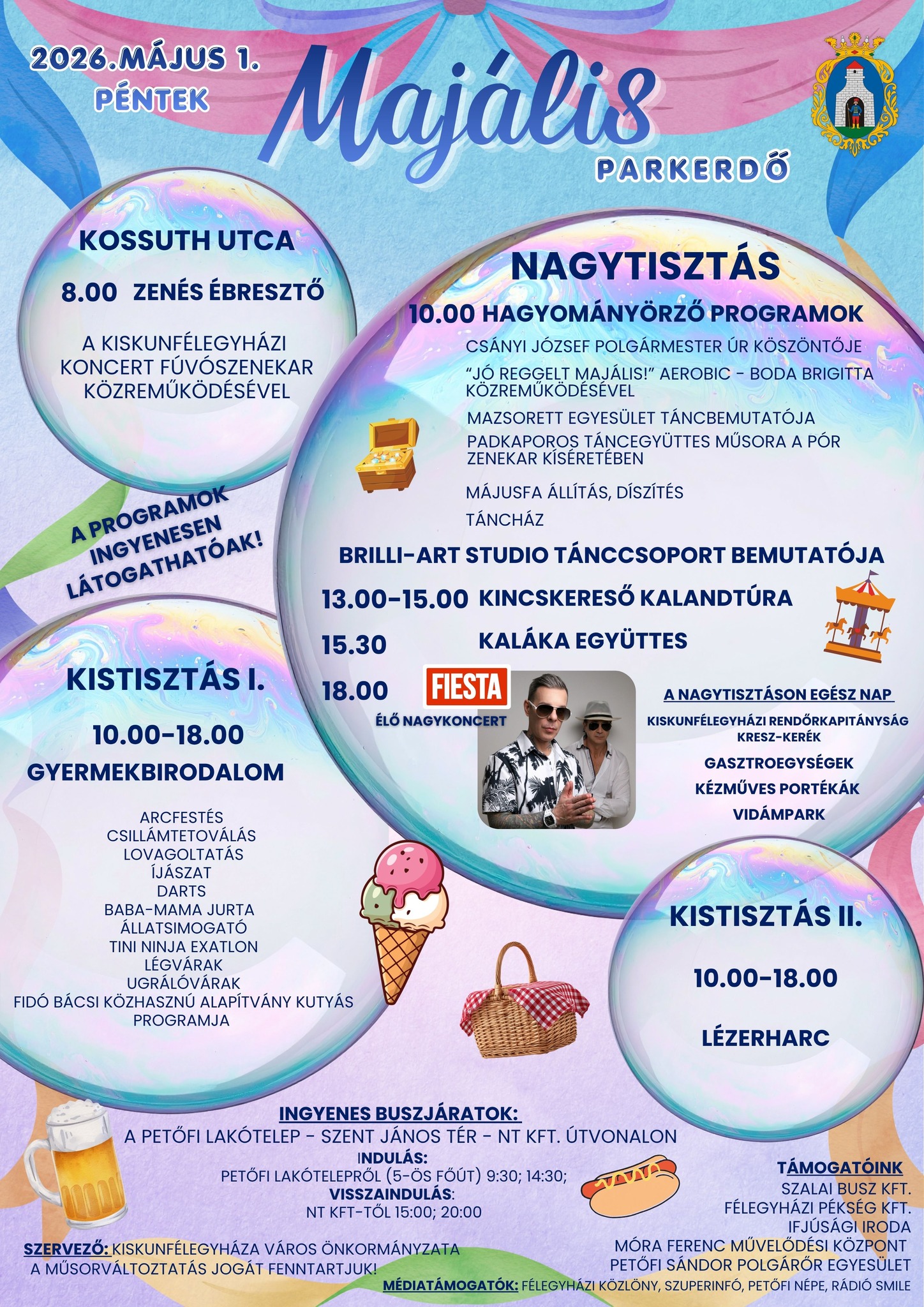 Május elsején, pénteken színes programokkal várja a félegyháziakat és környékbelieket a Városi Majális a Parkerdőben. A napot idén is zenés ébresztővel indítják a Kiskunfélegyházi Koncert Fúvószenekarral a ligetös Főutcán, majd a Parkerdőben 10 órától indulnak a programok, tudtuk meg Keresztes Tündétől, az önkormányzat munkatársától.